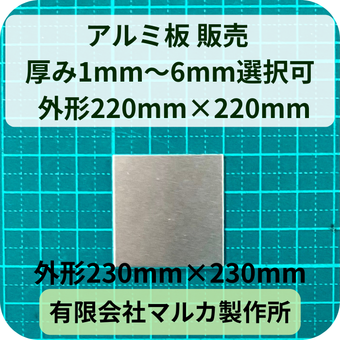 こちらのページはアルミ板 (A5052) 外形220mm×220mmの販売ページです。