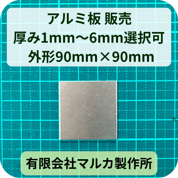 こちらのページはアルミ板 (A5052) 外形90mm×90mmの販売ページです。